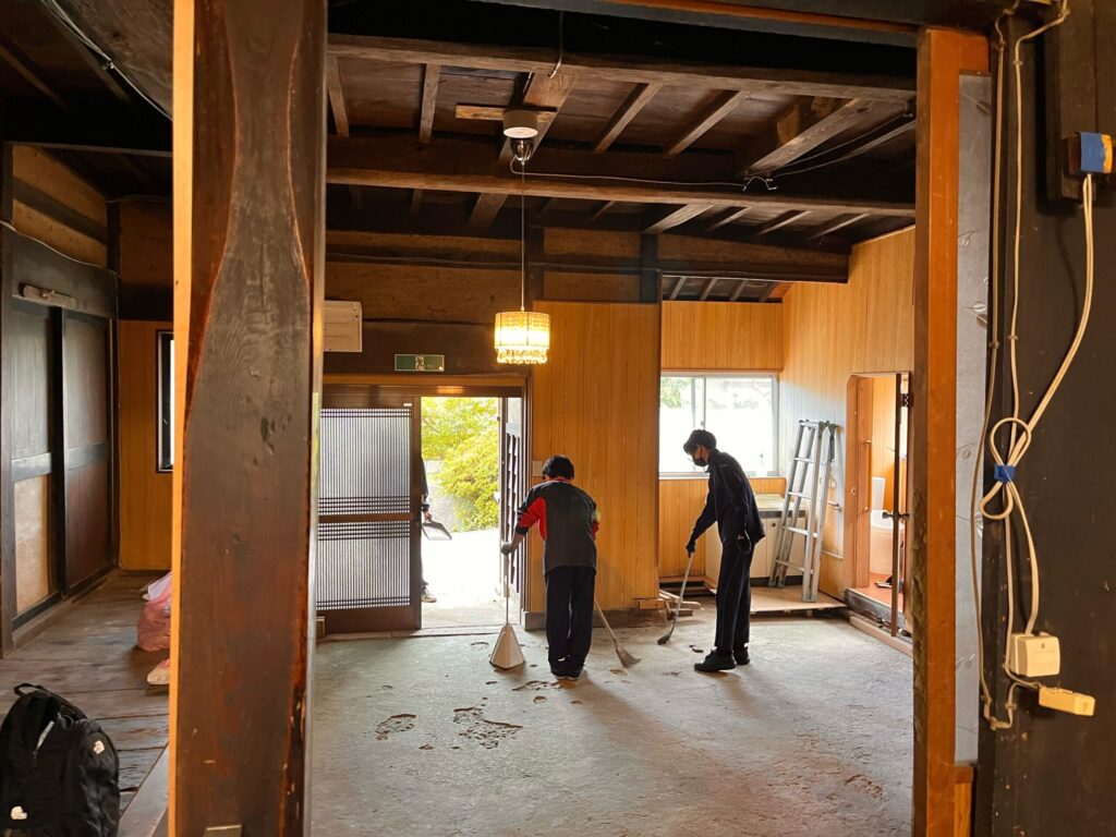 11/2(日)は能登高生2名と共にボランティアに参加。被災した古民家をシェアハウスとして生まれ変わらせる為、古民家内のカビ取りや消毒等を行いました。長い間放置されていたことから、最初はカビだらけでしたが、高校生の頑張りでピカピカの室内に生まれ変わりました。
