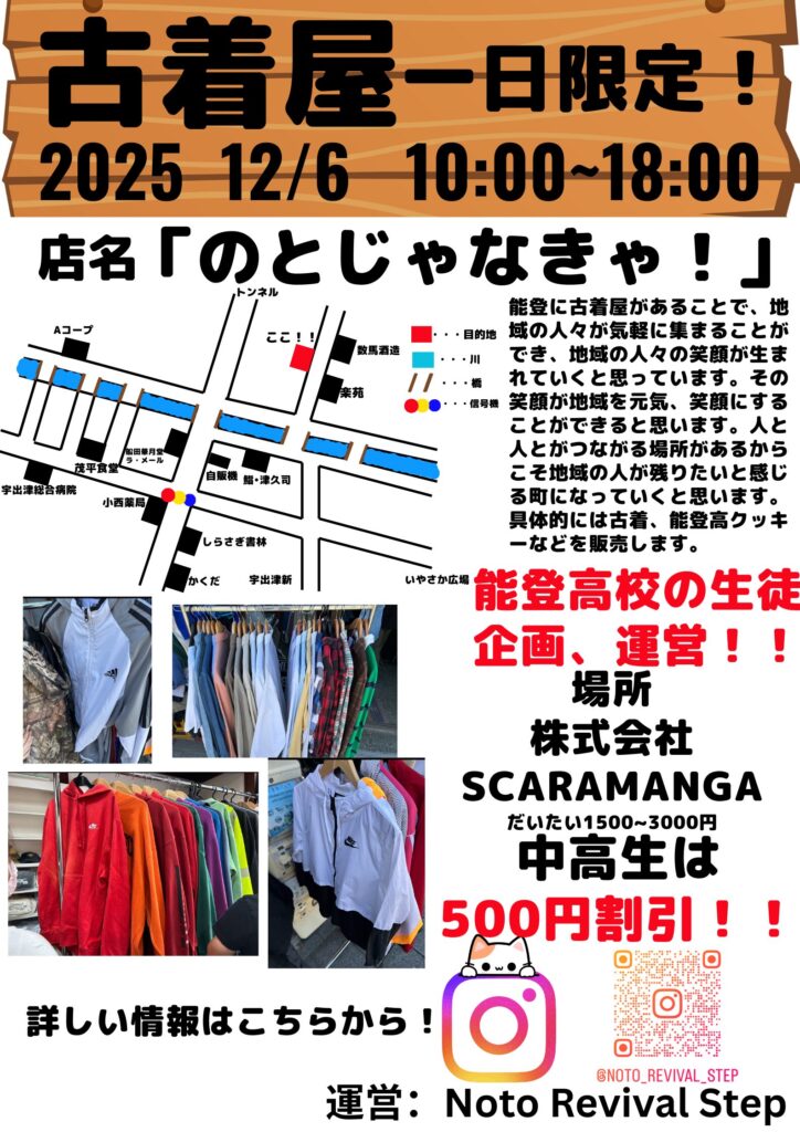 12月6日(土)能登高生が一日限定で古着屋をやります!
