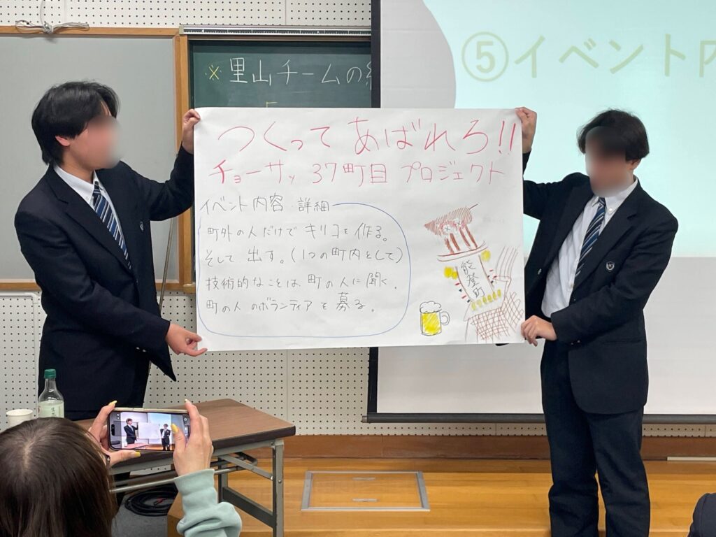最後に、グループごとに能登町外に伝えたい能登町の魅力についてディスカッションを行い、それを活かした「能登町ファンを増やす」ためのイベントを考案しました。能登町在住者だけでなく、外部からの参加者もいたため、能登町の魅力をより多様な視点から発見することが出来たと思います。各グループからは、高校生のアイデアも沢山詰まった素敵なイベントが発表されました。